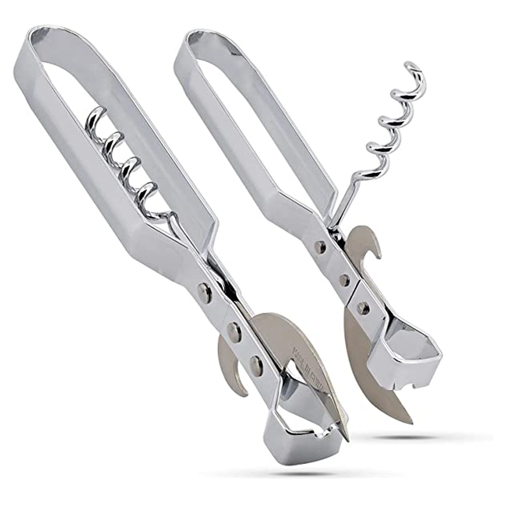 - 3-in-1 design includes can opener, corkscrew, and bottle opener